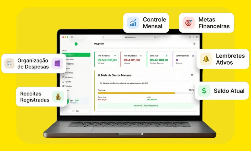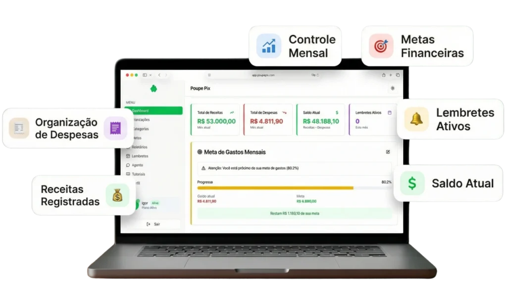 Depois de testar várias formas de controle financeiro, criei o PoupePix: uma ferramenta simples, prática e direta para organizar receitas, gastos, metas e lembretes em um só lugar.
